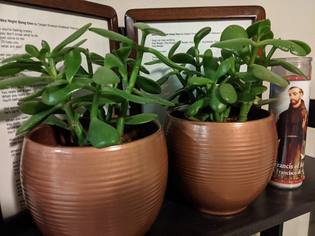 For my birthday in 2020 I bought two beautiful jade plants at the walkable Austin garden store The Great Outdoors. They were thriving until I think I made a mistake, setting them on the balcony on a hot day last summer. They’ve been ailing and finally last week it became time to let them go.
